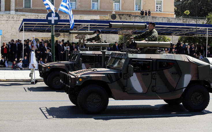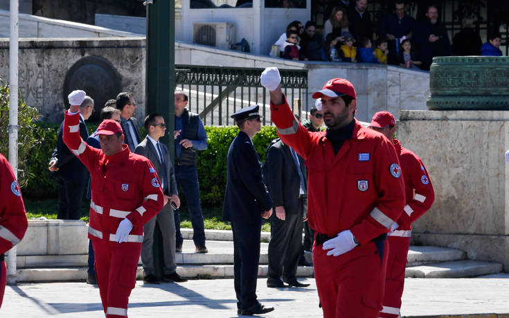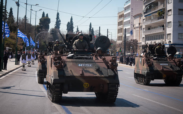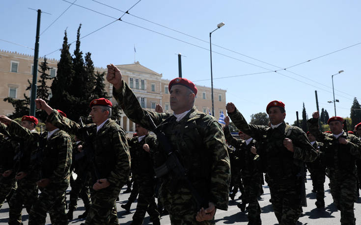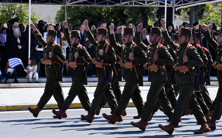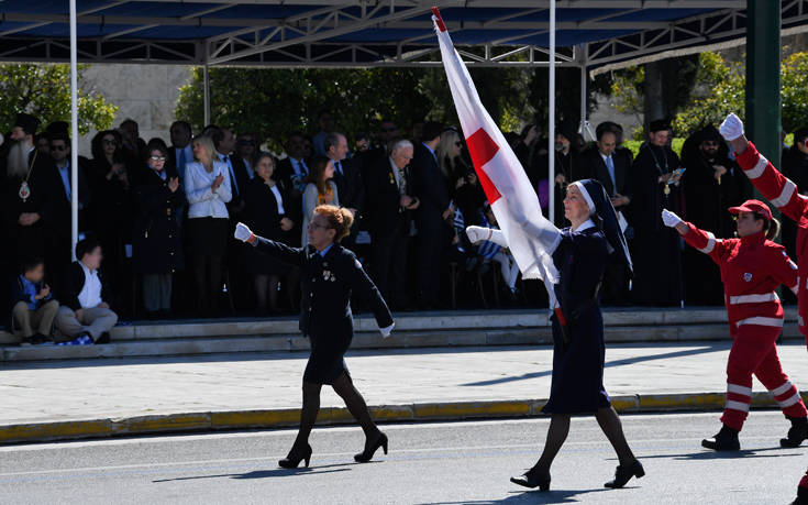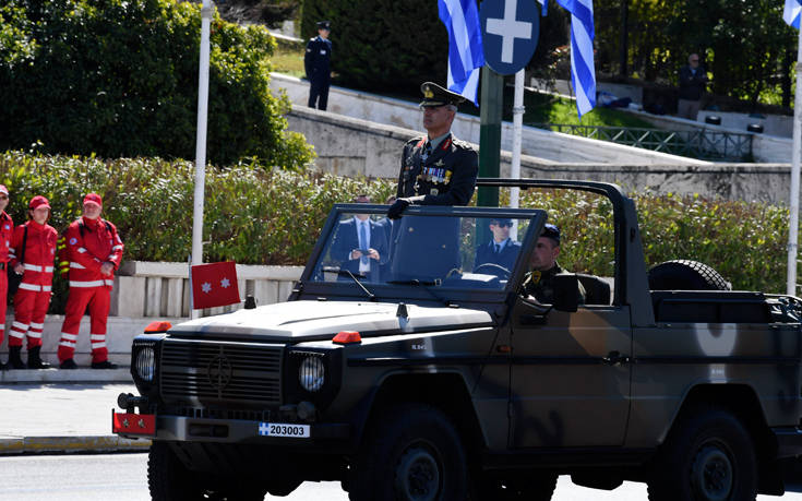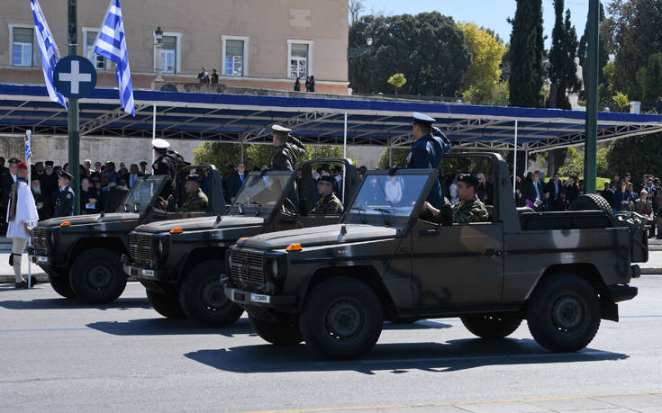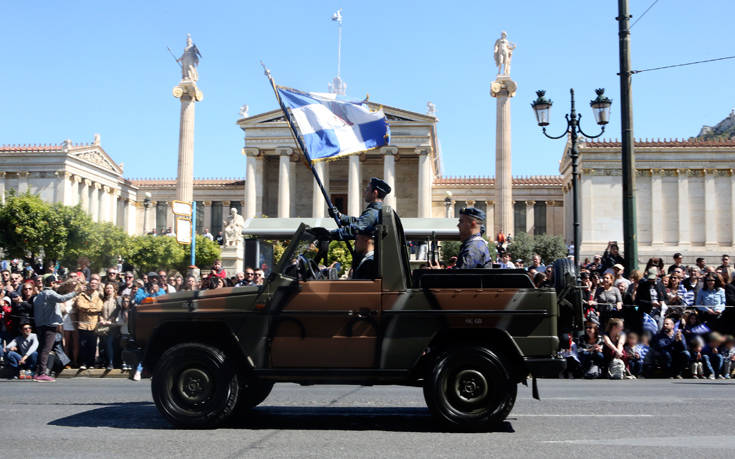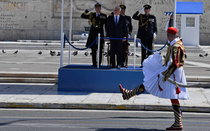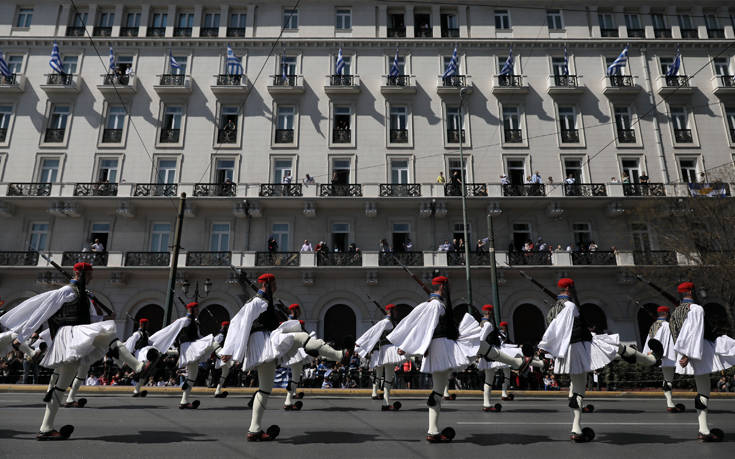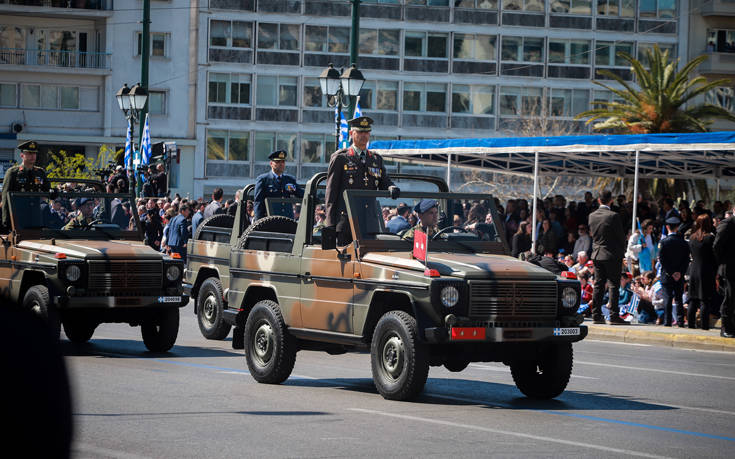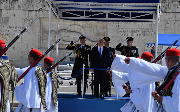 Παρουσία του Προέδρου της Δημοκρατίας, Προκόπη Παυλόπουλου ξεκίνησε, λίγα λεπτά μετά τις 11:00, στην Πλατεία Συντάγματος η στρατιωτική παρέλαση με την οποία κορυφώνονται οι εορταστικές εκδηλώσεις για την επέτειο της 25ης Μαρτίου.