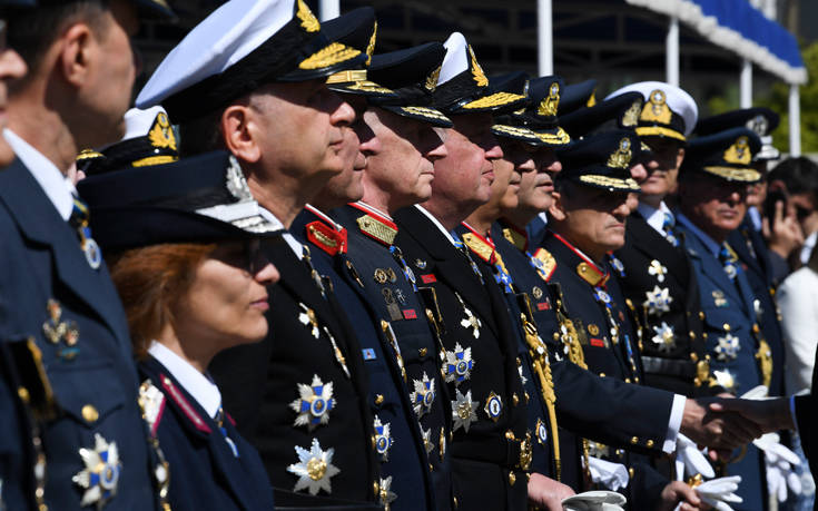 Ο πρόεδρος της Δημοκρατίας συνεχάρη τον έχοντα το γενικό πρόσταγμα διοικητή της στρατιωτικής σχολής Ευελπίδων υποστράτηγο Δημήτριο Χούπη για το άρτιο της παρελάσεως και στη συνέχεια πλησίασε τους αναπήρους πολέμους με τους οποίους είχε ολιγόλεπτες συνομιλίες.