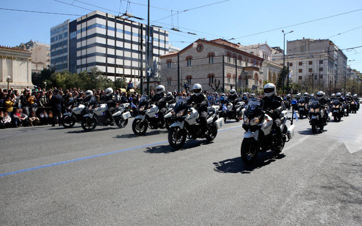 Η Ελληνική Αστυνομία συμμετείχε με τους δικυκλιστές των ειδικών ομάδων «ΔΙΑΣ» και «Ζ», διάφορα περιπολικά της Άμεσης Δράσης και με δύο ουλαμούς Δοκίμων Υπαστυνόμων της Σχολής Αξιωματικών της ΕΛΑΣ.