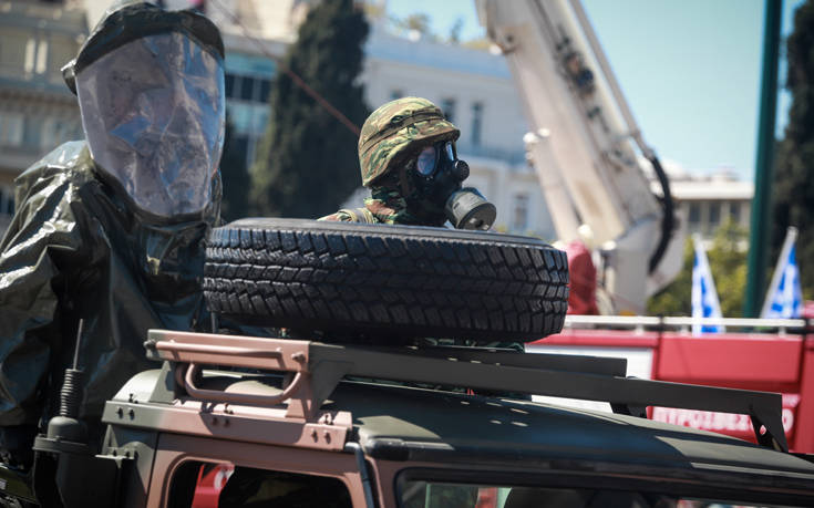 Στη συνέχεια παρέλασαν τα ειδικά οχήματα του Μηχανικού, για την άρση πάσης φύσεως κωλυμάτων στην ξηρά και τη θάλασσα και την εκκαθάριση ναρκοπεδίων