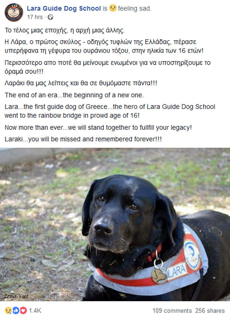 Στο ίδιο κλίμα και η ανάρτηση της σχολής Lara Guide Dog School: