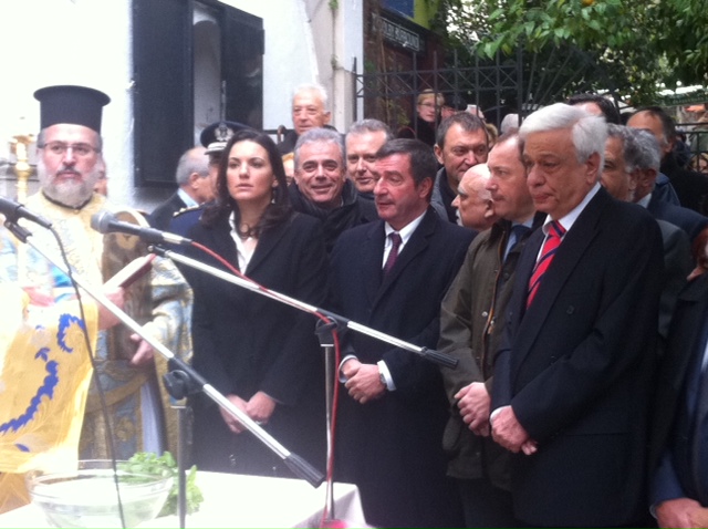 Είχε προηγηθεί η δοξολογία στον ιερό ναό του Αγίου Διονυσίου όπου έδωσαν το παρών ο Γιώργος Καμίνης, η Όλγα Κεφαλογιάννη και ο Προκόπης Παυλόπουλος.
