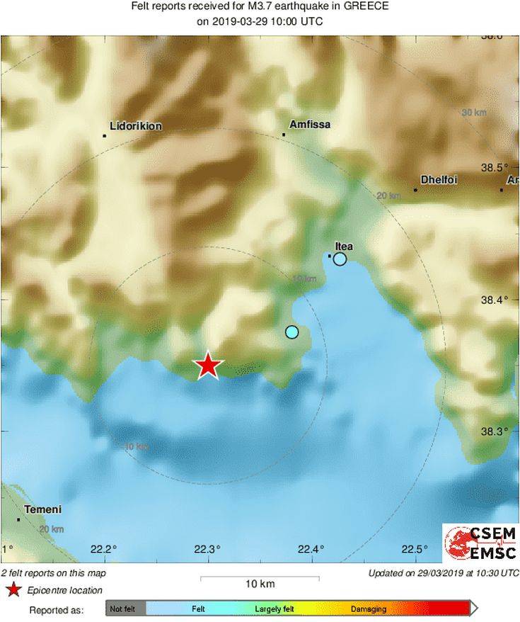 Η εκτίμηση του Ευρωμεσογειακού Ινστιτούτου για τη δόνηση είναι 3,7 Ρίχτερ.