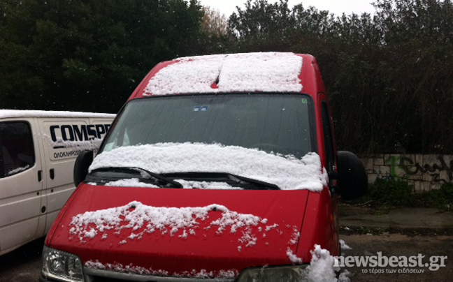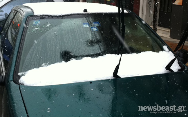 Οι οδηγοί των Ι.Χ., οι πιο προνοητικοί τουλάχιστον, φρόντισαν να σηκώσουν τους υαλοκαθαριστήρες για να μην «κολλήσουν».