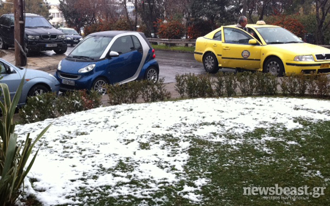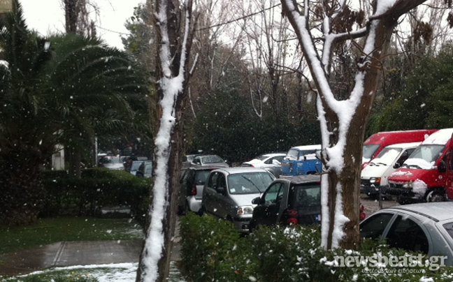 Μόνο κάποια παρκαρισμένα αυτοκίνητα έχουν ντυθεί στα… λευκά.