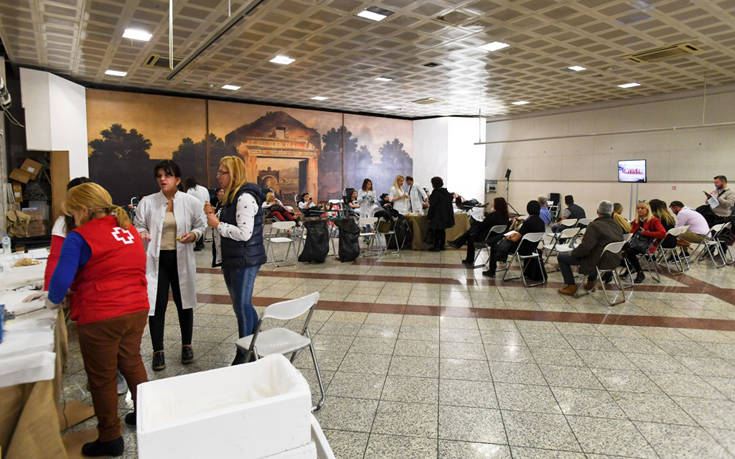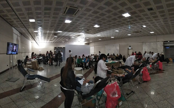 Στιγμιότυπα από το Μετρό Συντάγματος, όπου πραγματοποιήθηκε η αιμοδοσία στην Αθήνα