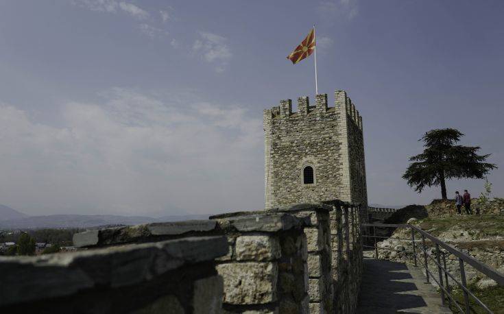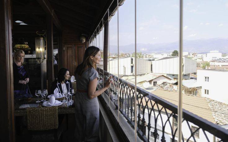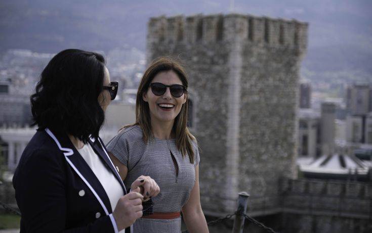 Η Μπέτυ Μπαζιάνα επισκέφθηκε το μεσημέρι το κάστρο των Σκοπίων, όπου την υποδέχτηκε η σύζυγος του Ζόραν Ζάεφ, Ζόριτσα Ζαέβα.