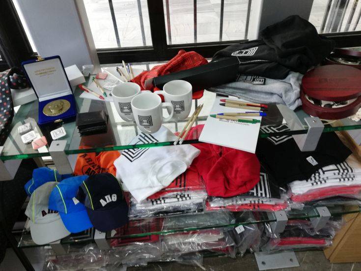 Η νέα σειρά αναμνηστικών περιλαμβάνει κούπες, υφασμάτινες τσάντες, μαντίλες, γραβάτες, καρφίτσες, σετ για κρασί, πρες παπιέ, υφασμάτινα τετράδια, στυλό, μολύβια και μπλούζες. Τα Χριστούγεννα η κίνηση στο κατάστημα ήταν αυξημένη, καθώς αρκετοί βρήκαν ενδιαφέρουσες προτάσεις για δώρα σε προσιτές τιμές.