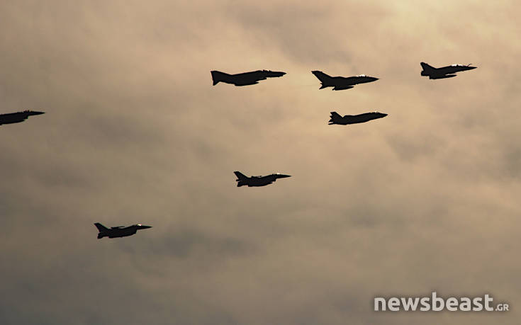 Μαχητικά αεροσκάφη πέταξαν πάνω από την Αθήνα από τις 18:20 μέχρι και τις 18:30, στα πλαίσια της άσκησης «Ηνίοχος».