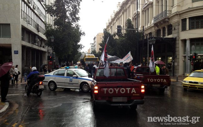 Διαμαρτύρονται οι οικοδόμοι στην πρωτεύουσα. Νωρίτερα, βρέθηκαν μπροστά από το υπουργείο Εργασίας επί της Σταδίου με αποτέλεσμα να προκληθεί μποτιλιάρισμα ενώ αυτή την ώρα, παρά την δυνατή βροχή, διανύουν την οδό Πανεπιστημίου και κατευθύνονται προς την Ομόνοια.