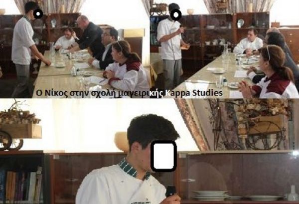 Αυτή είναι η πρώτη φωτογραφία του Νίκου που δημοσιεύεται από το Εσπερινό Γυμνάσιο Ηρακλείου στην σχολή Μαγειρικής Kappa Studies στο Ηράκλειο.