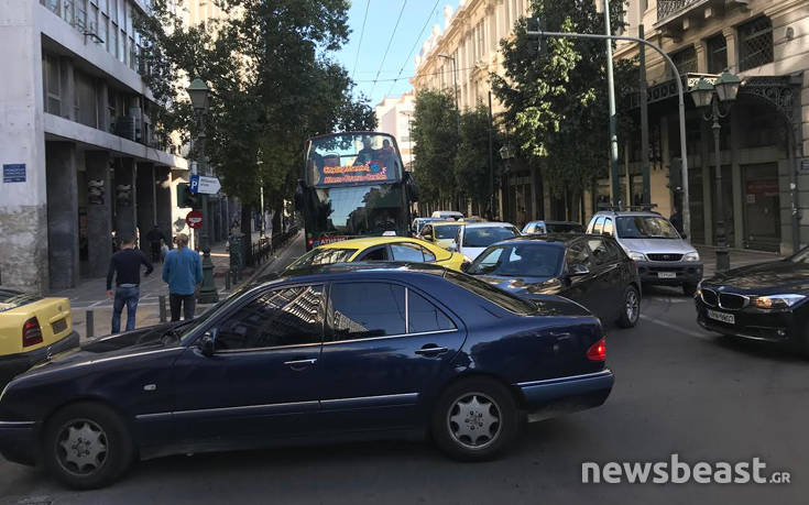 Κυκλοφοριακό χάος επικρατεί αυτή την ώρα στο κέντρο της Αθήνας, καθώς πριν λίγο έκλεισε η οδός Σταδίου λόγω της συγκέντρωσης διαμαρτυρίας της ΠΟΕΔΗΝ στο υπουργείο Εργασίας.