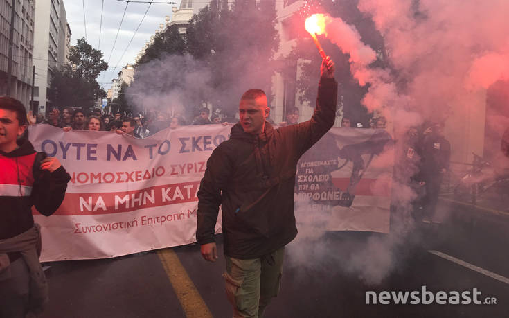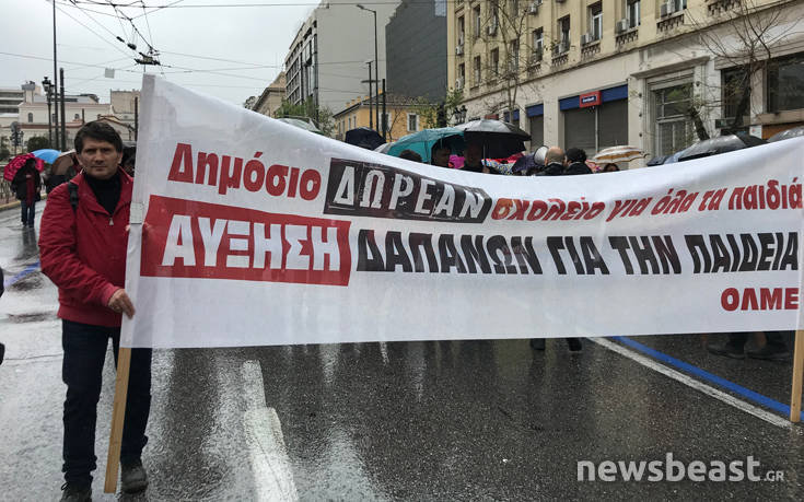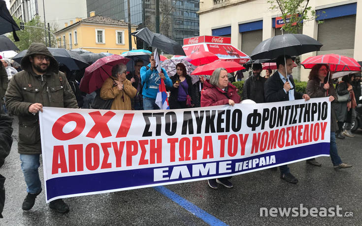 Οι εκπαιδευτικοί και οι μαθητές διαδηλώνουν κατά του νομοσχεδίου του υπουργείου Παιδείας για τις αλλαγές στην τάξη της Γ´ λυκείου και στο σύστημα εισαγωγής στην Τριτοβάθμια Εκπαίδευση.