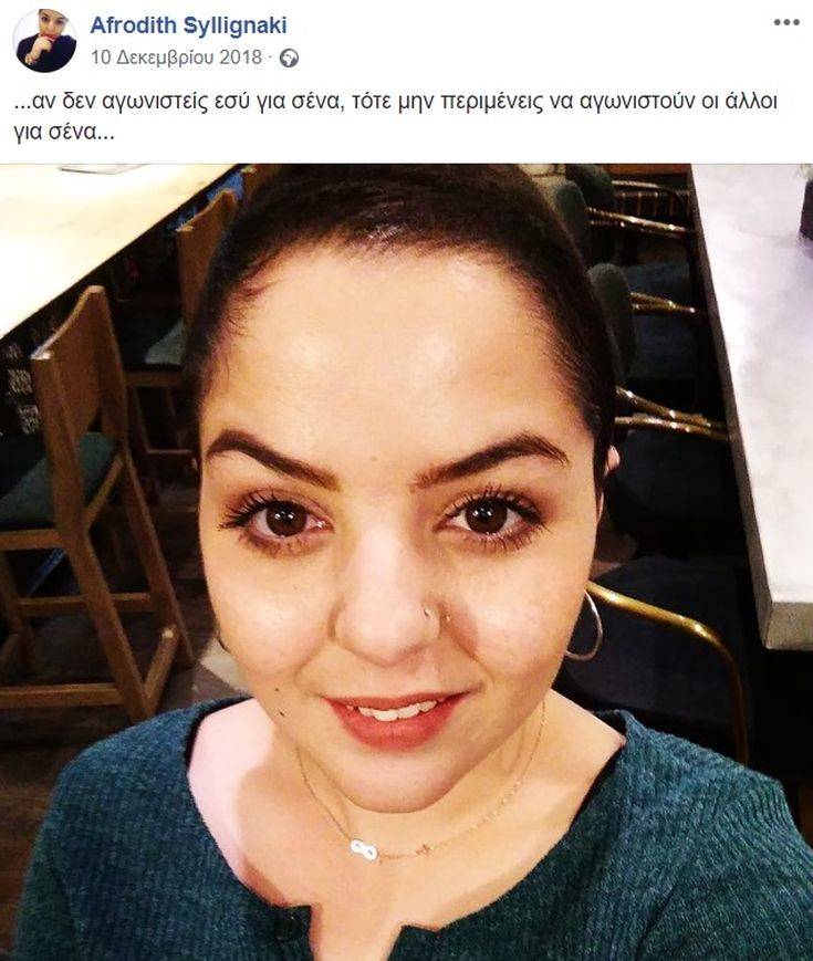 Η Αφροδίτη Συλλιγνάκη, σύμφωνα με ρεπορτάζ του candiadoc.gr, έδωσε το τελευταίο διάστημα με γενναιότητα τη μάχη για τη ζωή, απέναντι στη σοβαρή ασθένεια που τη χτύπησε. Δυστυχώς δεν τα κατάφερε, και έφυγε χθες, Τρίτη, για το τελευταίο της ταξίδι, όπως και η μητέρα της, που χάθηκε στα 32 της χρόνια από την ίδια ασθένεια.