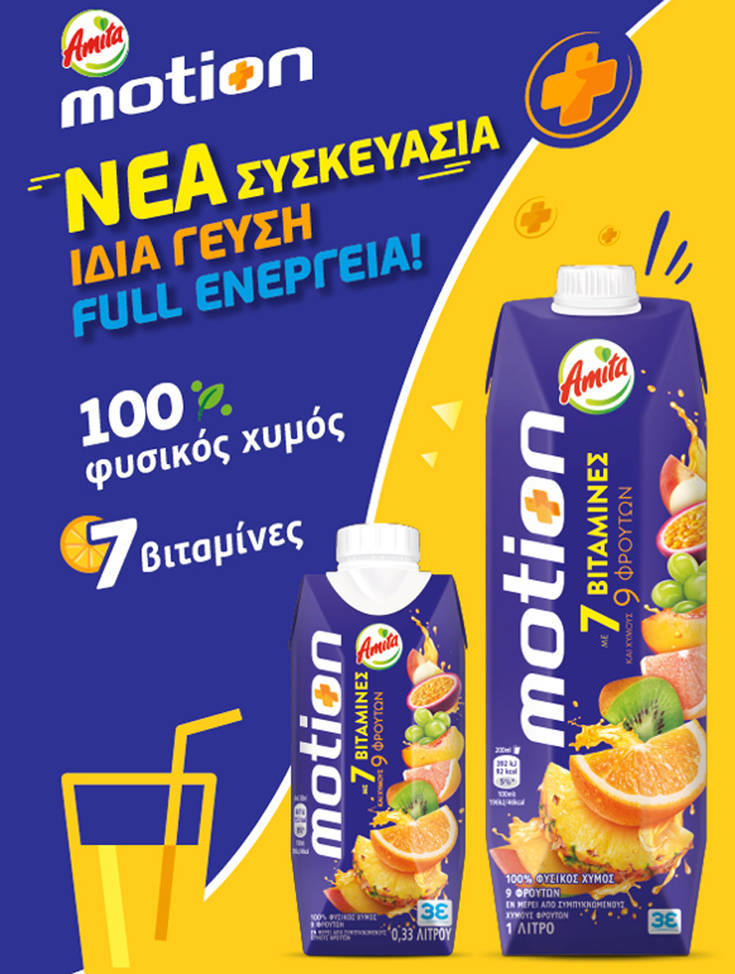 Ανακαλύψτε τώρα και εσείς την ανανεωμένη συσκευασία της Amita Motion, απολαύστε τον αγαπημένο σας χυμό και γεμίστε την καθημερινότητα σας με full ενέργεια!