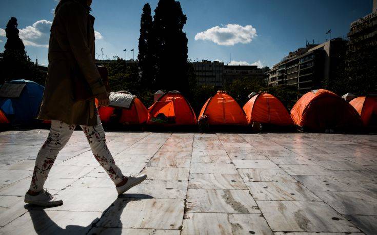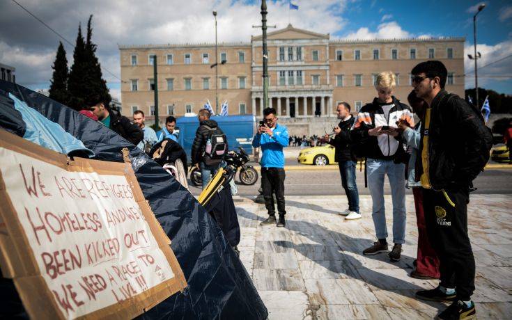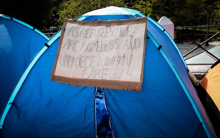 Στην πλατεία Συντάγματος κατασκήνωσαν το μεσημέρι μετανάστες και πρόσφυγες που διέμεναν σε υπό κατάληψη κτίρια στα Εξάρχεια, τα οποία εκκενώθηκαν μετά από επιχείρηση της αστυνομίας.