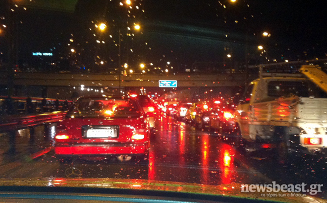 Ισχυρή βροχόπτωση έπληξε την Αθήνα λίγο μετά τις 5 το απόγευμα με αποτέλεσμα να πλημμυρίσουν οι δρόμοι και να προκληθεί ακόμη μεγαλύτερο κυκλοφοριακό κομφούζιο στους ήδη επιβαρυμένους από τις απεργίες στα ΜΜΜ δρόμους της πρωτεύουσας.