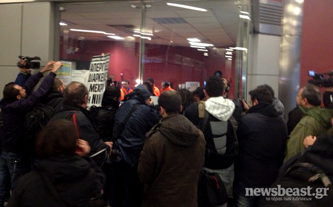 Ομάδα περίπου 15 ατόμων από τους απεργούς εργαζομένους του μετρό μπήκε στο κέντρο ελέγχου στον «Άγιο Αντώνιο» και κόλλησε χαρτιά με τα οποία ανακοίνωναν ότι προχώρησαν σε συμβολική κατάληψη, η οποία κράτησε περίπου πέντε λεπτά