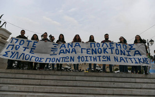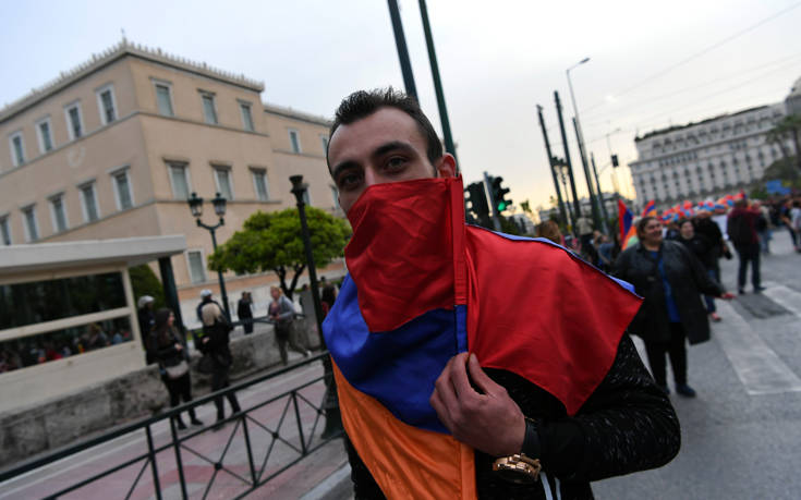 Με δυναμική πορεία από το Σύνταγμα προς την πρεσβεία της Τουρκίας αρκετοί διαδηλωτές κορύφωσαν τις εκδηλώσεις μνήμης για την 104η επέτειο της Γενοκτονίας των Αρμενίων.