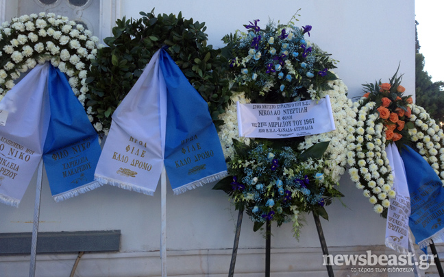 Στεφάνια έστειλαν ο Κώστας Πλεύρης, υποψήφιος βουλευτής επικρατείας με το ΛΑΟΣ στις τελευταίες βουλευτικές εκλογές, η οικογένεια Στυλιανού Παττακού και η χήρα του Νικόλαου Μακαρέζου, Χαρίκλεια Μακαρέζου.