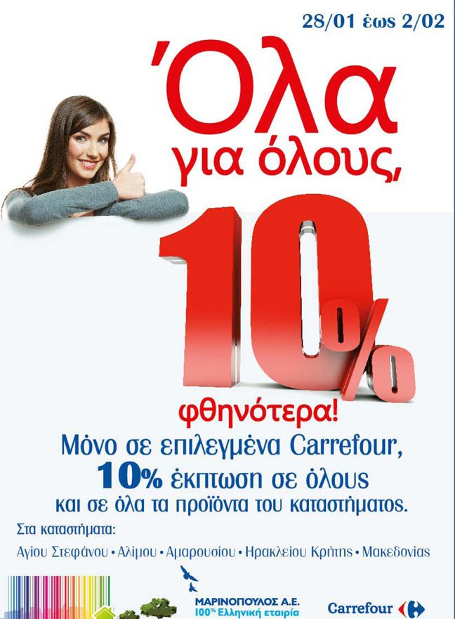 Στο πλαίσιο αυτό, προσφέρει 10% επί τόπου έκπτωση σε ΌΛΑ τα προϊόντα, για ΌΛΟΥΣ τους πελάτες, που θα προβούν σε αγορές από 28/01 έως 2/02 στα καταστήματα του Αγίου Στεφάνου, Αλίμου, Αμαρουσίου, Ηρακλείου Κρήτης, Μακεδονίας.