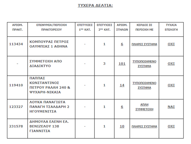 Δείτε παρακάτω το σχετικό αναλυτικό πίνακα που είναι διαθέσιμος στην ιστοσελίδα του ΟΠΑΠ:
