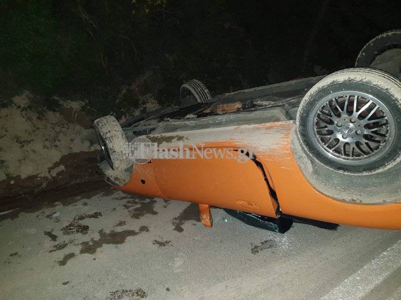 Ο οδηγός που από το ατύχημα κατέληξε να βρίσκεται στη θέση του συνοδηγού, από θαύμα δεν τραυματίστηκε πολύ σοβαρά.