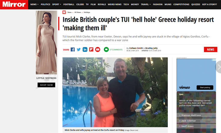 Εκπρόσωπος του διεθνούς τουριστικού οίκου είπε: «Λυπούμαστε για την δυσάρεστη εμπειρία της κυρίας και του κύριοι Κλαρκ στην Κέρκυρα. Κάνουμε έρευνα για τις καταγγελίες τους και θα επικοινωνήσουμε σύντομα μαζί τους για να λυθεί το ζήτημα».