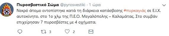Την σορό του άνδρα εντόπισαν πυροσβέστες που έσπευσαν για να επιχειρήσουν στη φωτιά που είχε εκδηλωθεί στο όχημά του.