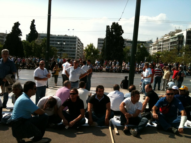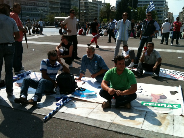 Καθιστική διαμαρτυρία στην πλατεία Συντάγματος, μπροστά από το μνημείο του Άγνωστου Στρατιώτη, πραγματοποιούν αυτή την ώρα οι ιδιοκτήτες φορτηγών και βυτιοφόρων.