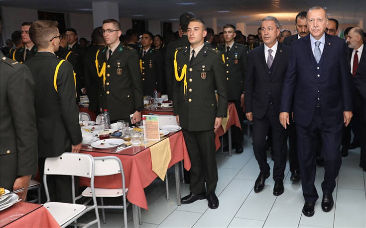 Ο πρόεδρος της γειτονικής χώρας, Ρετζέπ Ταγίπ Ερντογάν, προχώρησε από την πλευρά του σε σκληρές δηλώσεις μιλώντας σε νέους αξιωματικούς του τουρκικού στρατού. «Εσείς θα σταματήσετε τις αυξανόμενες προσπάθειες παραβίασης των δικαιωμάτων μας στην Ανατολική Μεσόγειο και το Αιγαίο», είπε χθες το βράδυ, σε ομιλία του στους φοιτητές της Σχολής Ευελπίδων.