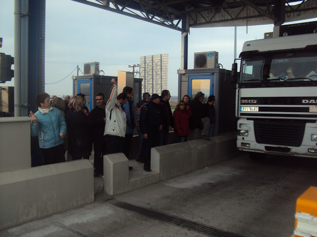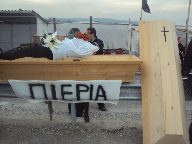 Οι συγκεντρωθέντες σήκωσαν για μία ώρα περίπου τις μπάρες επιτρέποντας την ελεύθερη διέλευση των διερχόμενων οχημάτων, ενώ τοποθέτησαν στο σημείο ένα φέρετρο με μία ακέφαλη γυναικεία κούκλα, συμβολίζοντας την «κηδεία της Πιερίας».