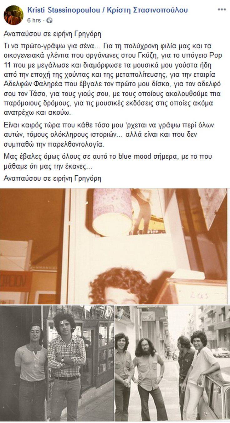 Αναπαύσου σε ειρήνη Γρηγόρη» έγραψε στην ανάρτηση της και τη συνόδευσε με ασπρόμαυρες φωτογραφίες.