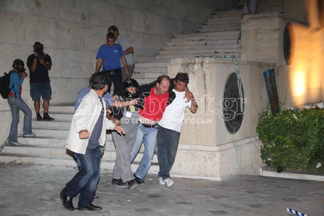 Επεισόδια σημειώθηκαν νωρίτερα μπροστά από το Μνημείο του Αγνώστου Στρατιώτη μεταξύ των αστυνομικών δυνάμεων και των ιδιοκτητών – φορτηγών που διαδηλώνουν παραμένοντας εκεί σήμερα όλη μέρα. Οι αυτοκινητιστές παρακολουθούν μέσω μιας τεράστιας οθόνης τη συζήτηση που γίνεται στο κοινοβούλιο για το νομοσχέδιο που αφορά στις μεταφορές.