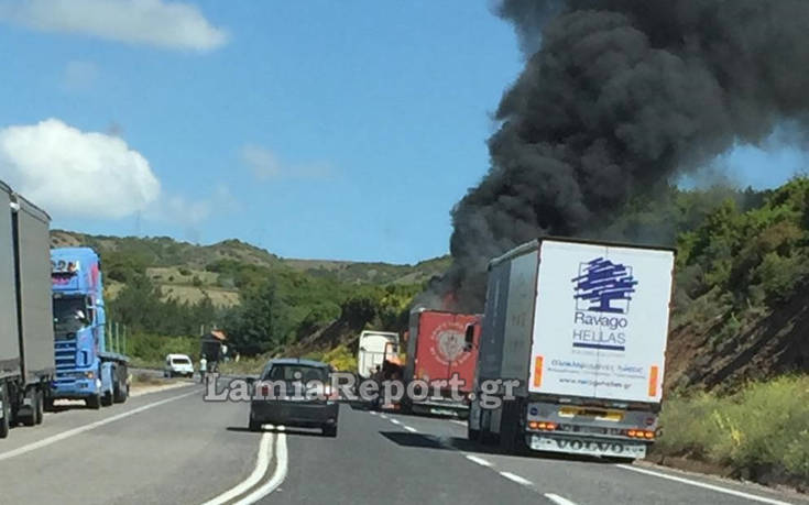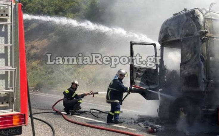Σύμφωνα με τις πρώτες πληροφορίες, η φωτιά σημειώθηκε πιο πάνω από τα «δίδυμα» πρατήρια, στον δρόμο Λαμία – Δομοκός. Όπως φαίνεται και στο βίντεο που έστειλε αναγνώστης του LamiaReport που περνούσε από το σημείο, η καμπίνα του φορτηγού έχει τυλιχθεί στις φλόγες.