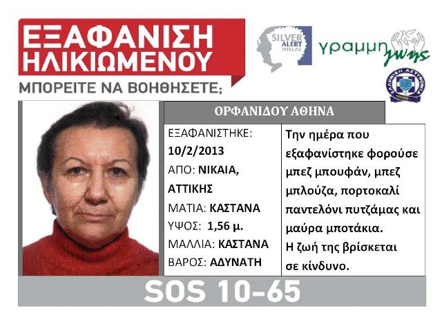 Silver Alert έχει δοθεί για την Αθηνά Ορφανίδου, η οποία χάθηκε στη Νίκαια Αττικής.