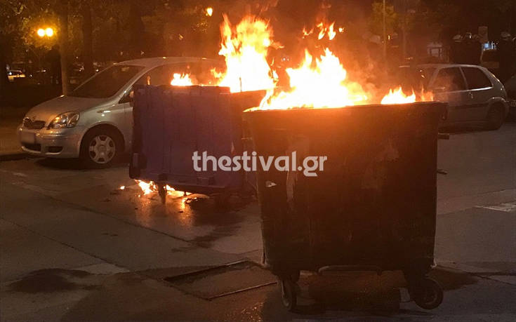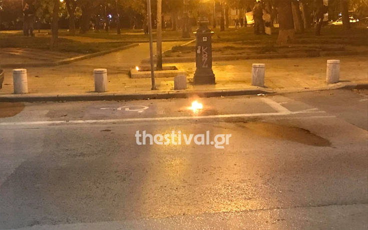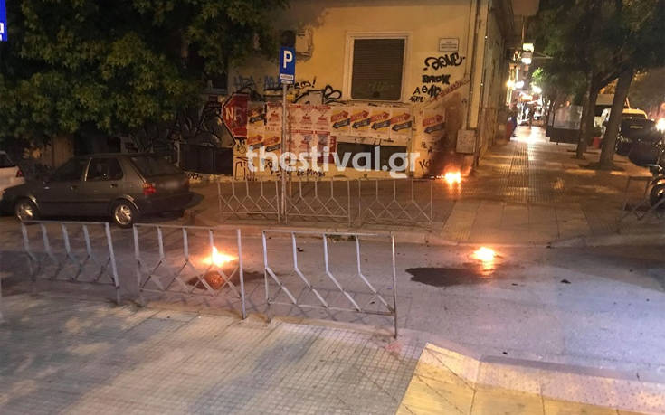 Περίπου 15 άτομα πέταξαν 10 μολότοφ στην Αγίου Δημητρίου. Την ίδια στιγμή, ομάδα ατόμων πέταξαν μολότοφ και στην οδό Εγνατία.