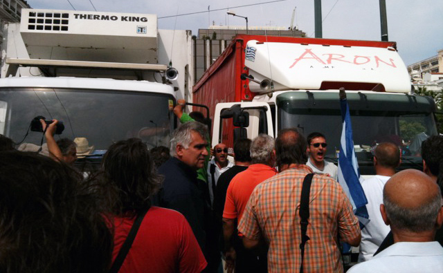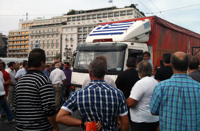 Μετά από επεισοδιακές διαβουλεύσεις με την αστυνομία, οι μεταφορείς απομάκρυναν τα δύο φορτηγά οχήματα που είχαν σταθμεύσει στη Λεωφόρο Αμαλίας, στην πλατεία Συντάγματος.