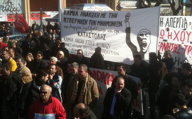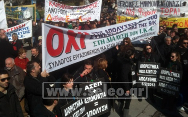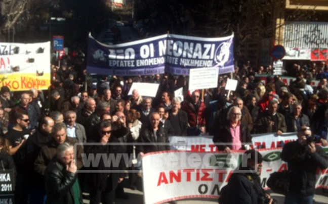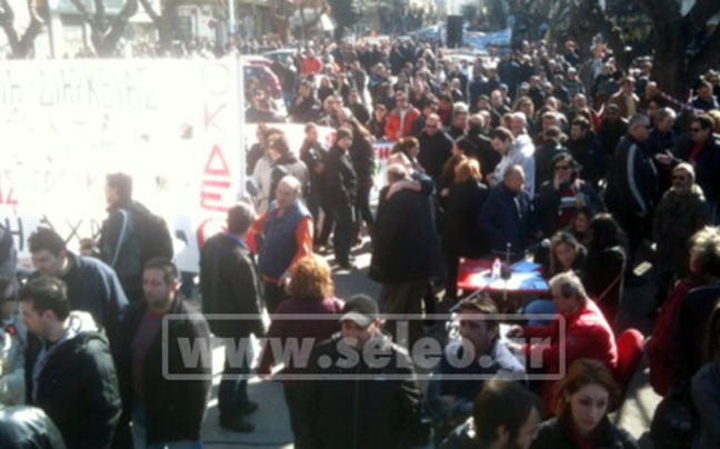Πάνω από 2.000 άτομα με πανό και συνθήματα κατά της κυβερνητικής πολιτικής διαμαρτυρήθηκαν έξω από το Εργατικό Κέντρο της Θεσσαλονίκης, σύμφωνα με το seleo.gr. Στη διαμαρτυρία συμμετείχαν δημόσιοι υπάλληλοι, ΕΔΟΘ, μέλη του ΣΥΡΙΖΑ και μέλη της Κίνησης ενάντια στον ρατσισμό