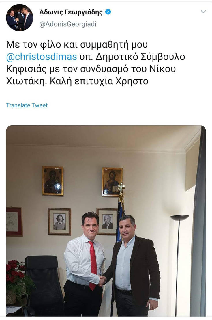 Είναι δε φυσιολογικό επακόλουθο, στελέχη του συνδυασμού του, όπως ο Χρήστος Δήμας να είναι ένας από τους βασικούς συνεργάτες στην προσπάθεια του συνδυασμού Χιωτάκη που έχει κεντρικό σύνθημα το «+εργαζόμαστε για την Πόλη της Καρδιάς μας»!