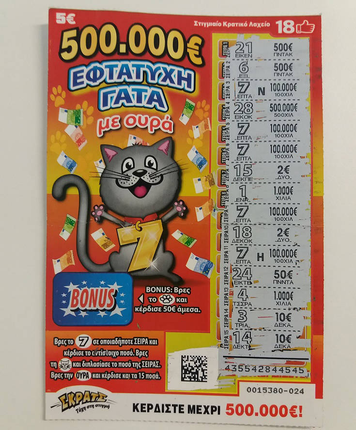 Το σερί μεγάλων κερδών στο παιχνίδι του ΟΠΑΠ ξεκίνησε από την Αθήνα. Μετά το «κυνήγι» σε όλη την Ελλάδα για την πολυσυζητημένη «Εφτάτυχη γάτα με ουρά» του ΣΚΡΑΤΣ, ένας τυχερός παίκτης στην Αθήνα κέρδισε το μεγάλο έπαθλο των 500.000 ευρώ, ενώ η αναζήτηση του δεύτερο δελτίου που κερδίζει 500.000 ευρώ είναι σε εξέλιξη.