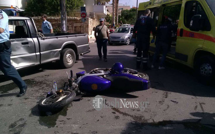 Ένα αγροτικό αυτοκίνητο συγκρούστηκε με ένα μηχανάκι, στη συμβολή των οδών Παπαναστασίου και Μουντάκη στα Χανιά, με αποτέλεσμα να τραυματισθεί ο οδηγός του δικύκλου, κάτω από αδιευκρίνιστες μέχρι στιγμής συνθήκες.
