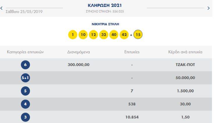 Οι τυχεροί αριθμοί του ΛΟΤΤΟ είναι: 1, 10, 12, 32, 40, 42 Bonus: 15