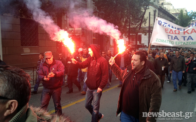Κλειστή είναι η Σταδίου από τους εργαζόμενους των ναυπηγείων Ελευσίνας, οι οποίοι κατευθύνονται στο υπουργείο Οικονομικών.