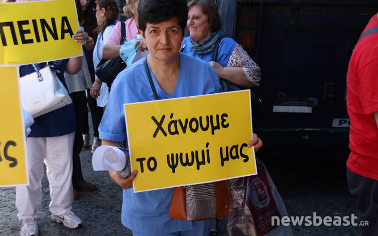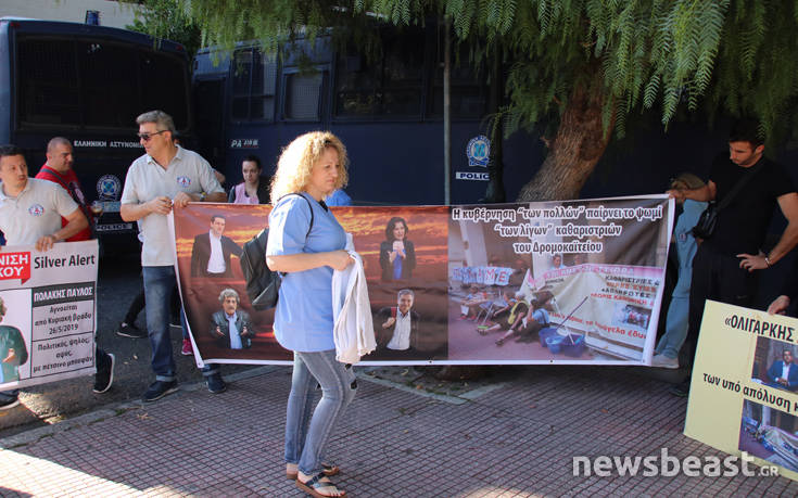 Οι καθαρίστριες κατηγορούν τον αναπληρωτή υπουργό Υγείας Παύλο Πολάκη για αθέτηση των δεσμεύσεων του αναφορικά με την ανανέωση των συμβάσεων και έχουν πλακάτ σαν silver alert που γράφει «εξαφάνιση πολιτικού: αγνοείται από Κυριακή βράδυ».