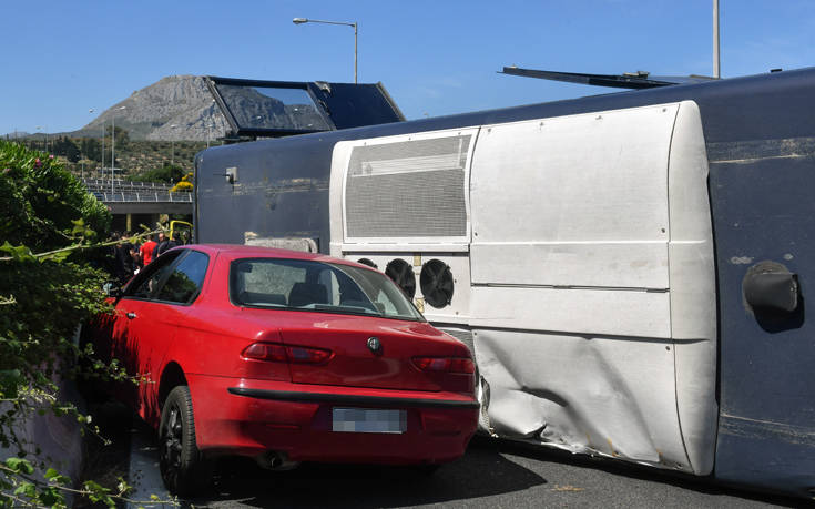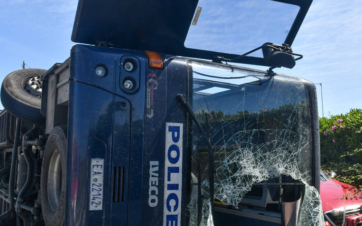 Δεκατρία άτομα τραυματίστηκαν στο τροχαίο ατύχημα που έγινε στην Κόρινθο, στον δρόμο προς την Τρίπολη και πιο συγκεκριμένα στην είσοδο προς την Αρχαία Πόλη, όταν κλούβα της Αστυνομίας γεμάτη με κρατούμενους τούμπαρε.