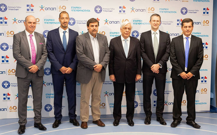 Ο ΟΠΑΠ παρέδωσε, την Πέμπτη 30 Μαΐου 2019, πλήρως ανακαινισμένο, έναν από τους μεγαλύτερους ορόφους του παιδιατρικού νοσοκομείου «Η Αγία Σοφία». Πρόκειται για τον τέταρτο όροφο του νοσοκομείου, ο οποίος περιλαμβάνει δύο νοσηλευτικές μονάδες, συνολικής έκτασης 1.610 τετραγωνικών μέτρων και δυναμικότητας 70 κλινών. Ο πλήρης εκσυγχρονισμός των νοσηλευτικών μονάδων εντάσσεται στο έργο ολικής ανακαίνισης που υλοποιεί ο ΟΠΑΠ στα παιδιατρικά νοσοκομεία «Η Αγία Σοφία» και «Παναγιώτης και Αγλαΐας Κυριακού».