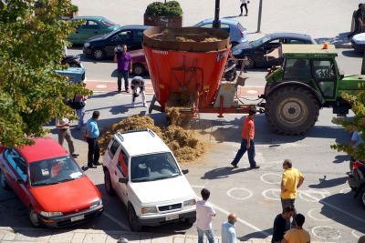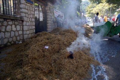 Έκαψαν σανό, έχυσαν γάλα ενώ υπήρξαν μικροσυμπλοκές με τις αστυνομικές δυνάμεις. Ακολούθως η πομπή κατευθύνθηκε μέσω κεντρικών οδών της πόλης στη Νομαρχία Ιωαννίνων, όπου οι κτηνοτρόφοι σκόρπισαν σανό και του έβαλαν φωτιά.