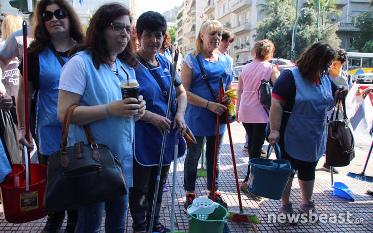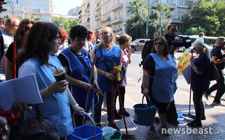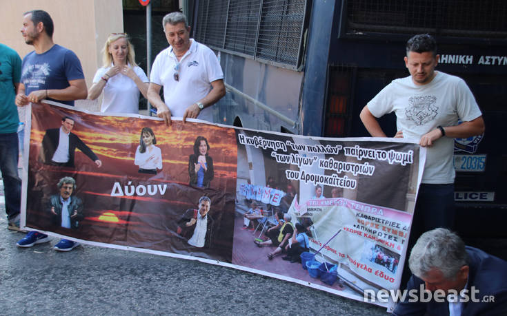 Οι διαδηλωτές, με την υποστήριξη της ΠΟΕΔΗΝ, συγκεντρώθηκαν στην Ηρώδου Αττικού και -όπως συνηθίζουν- έχουν δημιουργήσει ένα ιδιαίτερο σκηνικό, στο οποίο κυριαρχεί ένα πανό που έχει τις μορφές των Αλέξη Τσίπρα, Παύλου Πολάκη, Έφης Αχτσιόγλου, Ευκλείδη Τσακαλώτου και Θεανώς Φωτίου, με τη λέξη «δύουν». Δίπλα υπάρχει ένα σύνθημα «Η κυβέρνηση “των πολλών” παίρνει το ψωμί “των λίγων” καθαριστριών του Δρομοκαΐτειου».