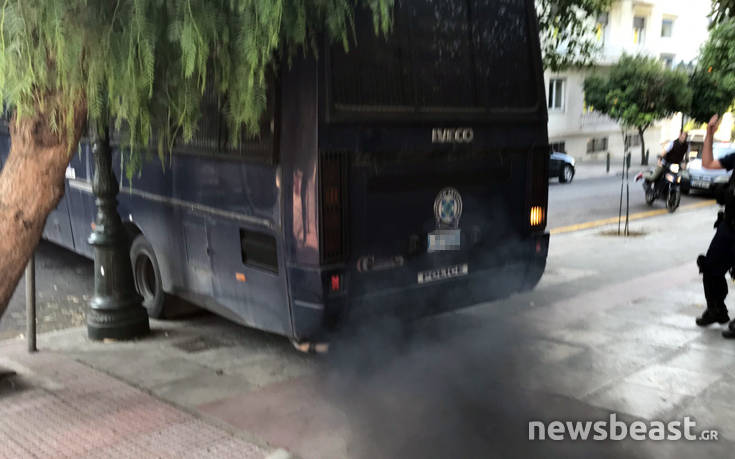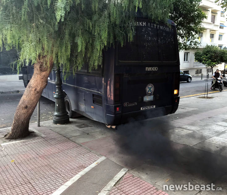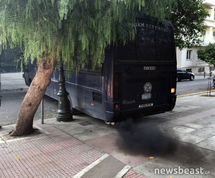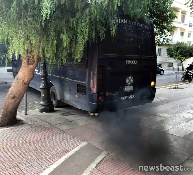 Αυτό ενδεχομένως να συμβαίνει και με μια κλούβα της Αστυνομίας, στο κέντρο της Αθήνας, η οποία έβγαζε ένα… ντουμάνι κατά τη διάρκεια μανούβρας, με στόχο να κλείσει τον δρόμο στην Ηρώδου Αττικού, όπου πραγματοποιούν κινητοποίηση μέλη της ΠΟΕΔΗΝ, σε μια ακόμη κίνηση για τις συμβάσεις των καθαριστριών στο Δρομοκαΐτειο που δεν έχουν ανανεωθεί ακόμη.